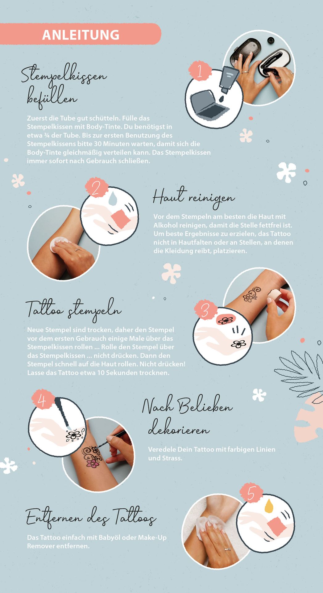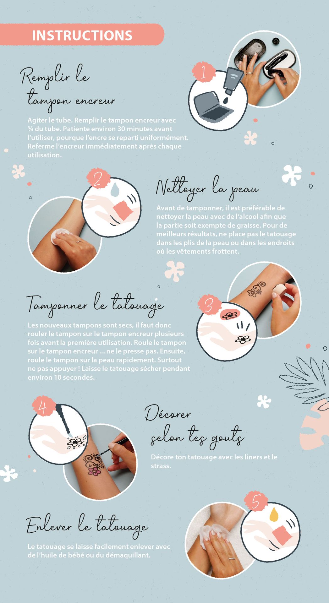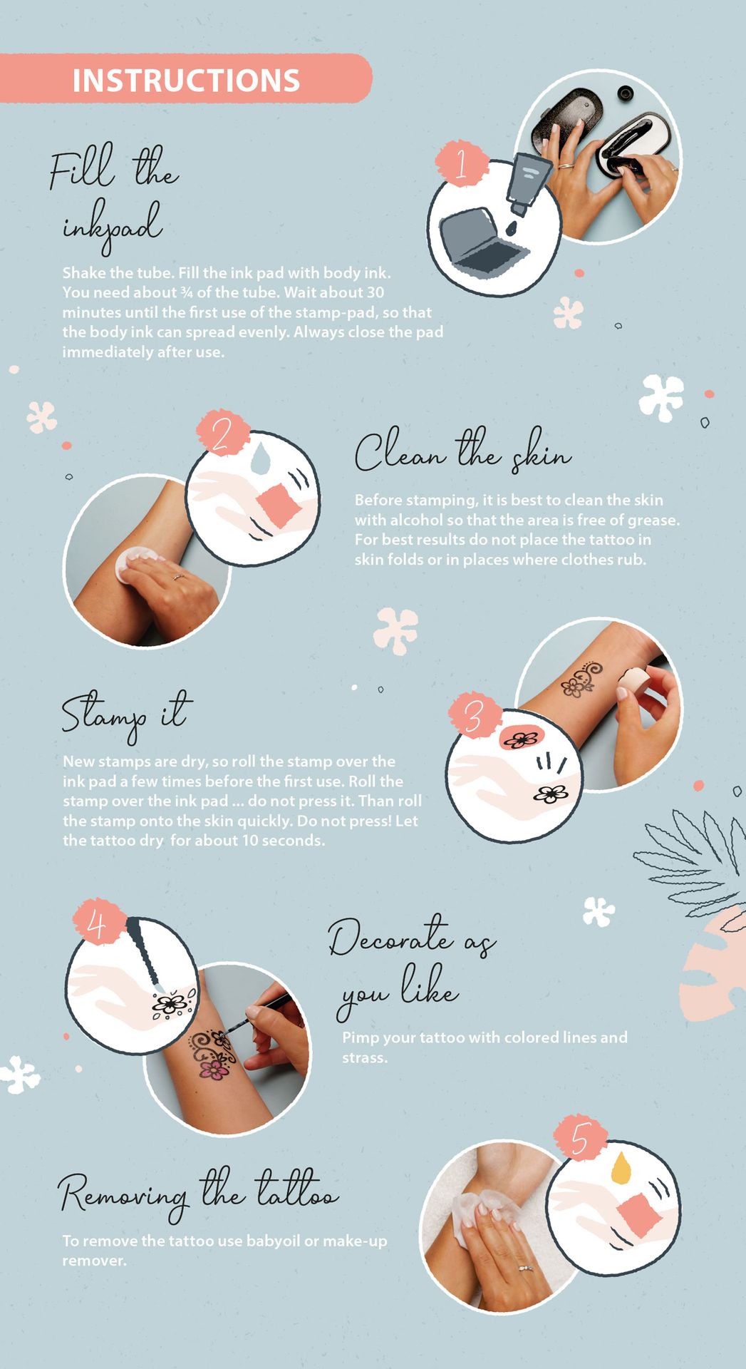 LaDot est connue pour ses dessins de tatouage très tendance. Avec les paillettes assorties, vous pouvez ajouter des accents supplémentaires. Achetez le set de tampons de tatouage correspondant et transformez votre peau en votre propre œuvre d'art